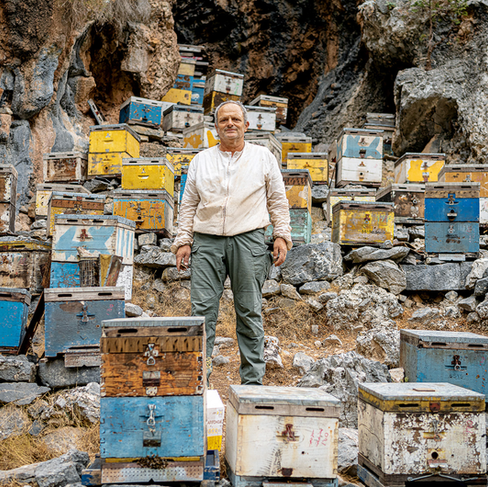 Afstammelingen van de trotse klassieke Doriƫrs, de familie Viglis houdt zich al sinds de oudheid bezig met imkeren. Theodoros Viglis volgt sinds zijn jeugd in de voetsporen van zijn familie, en elke batch honing weerspiegelt generaties aan kennis en ervaring over de Kretens natuur. Met toewijding en liefde voor het vak draagt hij deze eeuwenoude traditie verder, van bij tot pot.